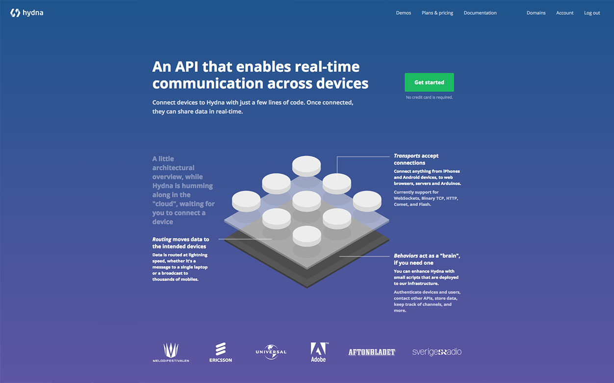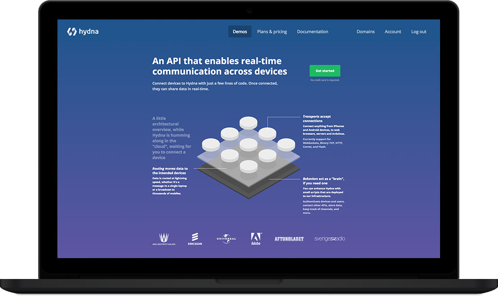 Hydna is a real-time service co-founded by skäggivara. Hydna provides developers with a powerful and flexible way to build scalable real-time applications without the need to deploy and maintain any servers.