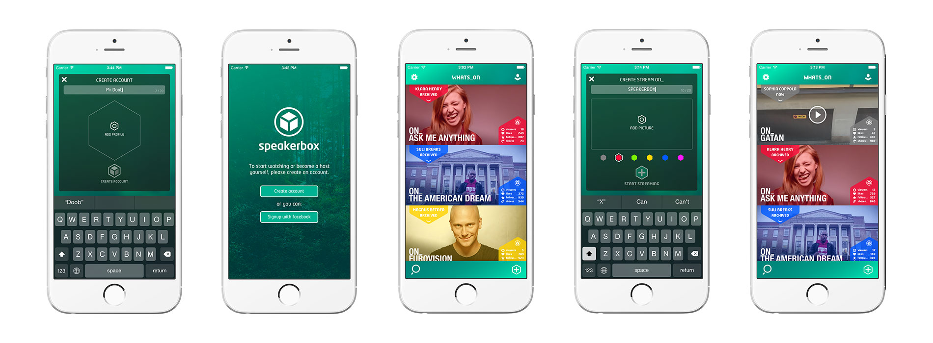 IOS native app prototype for the Speakerbox platform. Users can livestream and view other peoples livestream and chat all in realtime using the hydna platform.