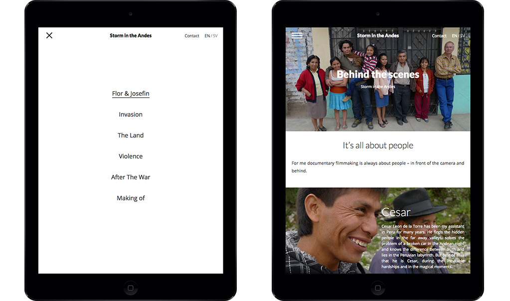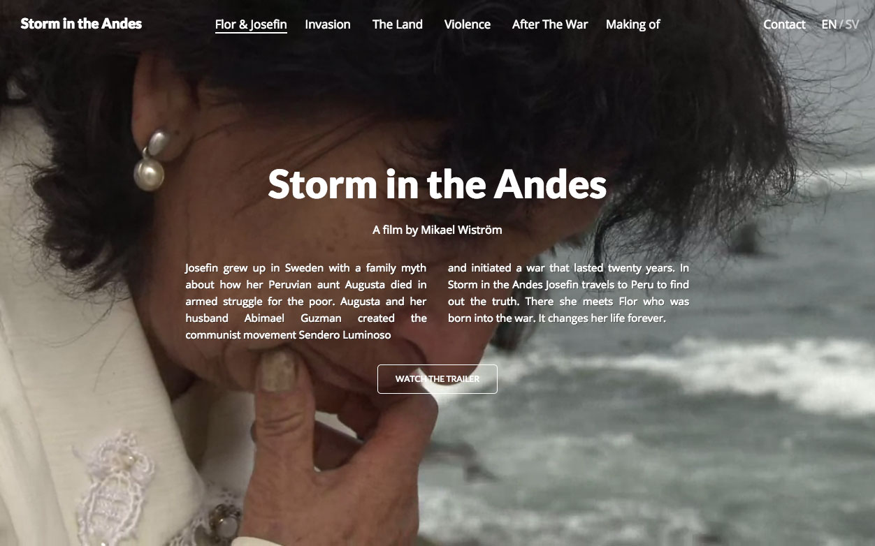 Skäggivara created the website for the film that also serves as an extension of the story using unique cinematic material for the website. Stunning video sequences are used to provide an emotional backdrop to story being told. The website takes you through the long legacy of exploitation of the andean peasants from the spanish conquerors to modern day government corruption and finally behind the scenes of the film itself and it’s consequences.