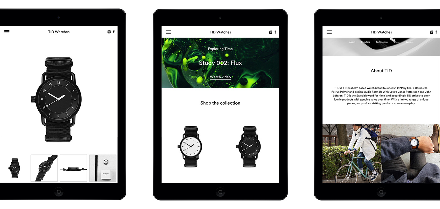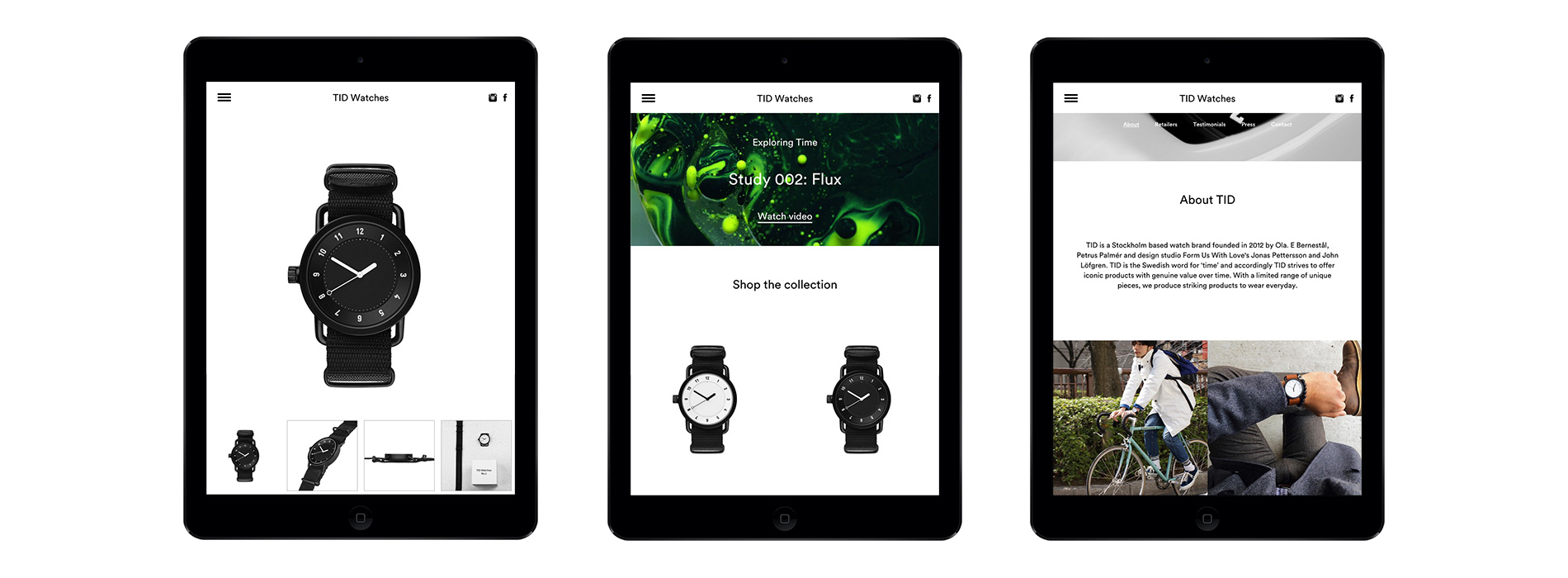 For the timeless watch company TID skäggivara developed a custom responsive tictail theme and a system for watch registration and validation seamlessly integrated into the theme.